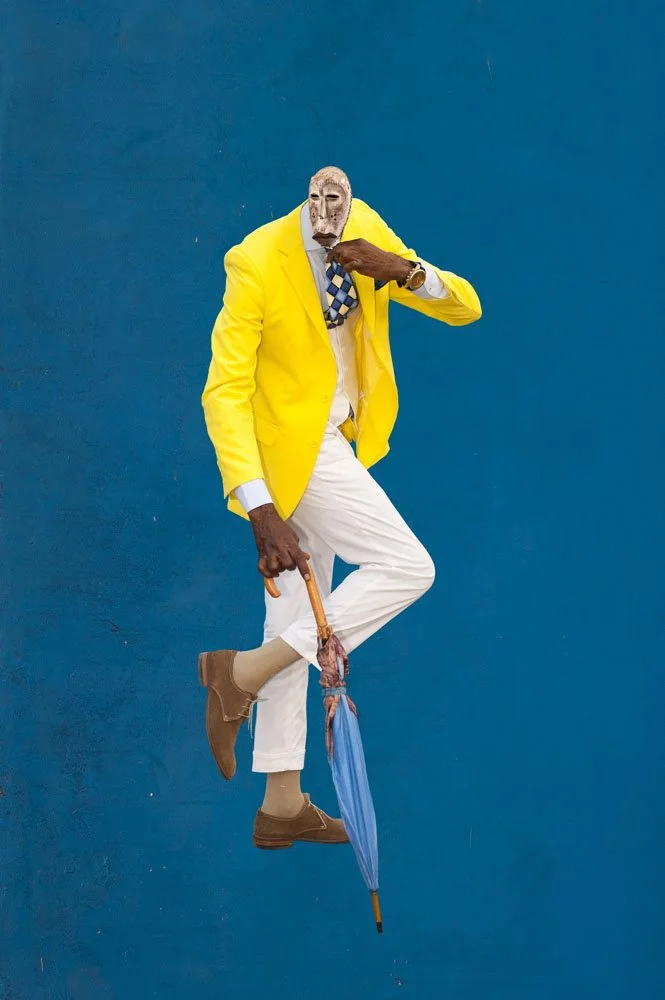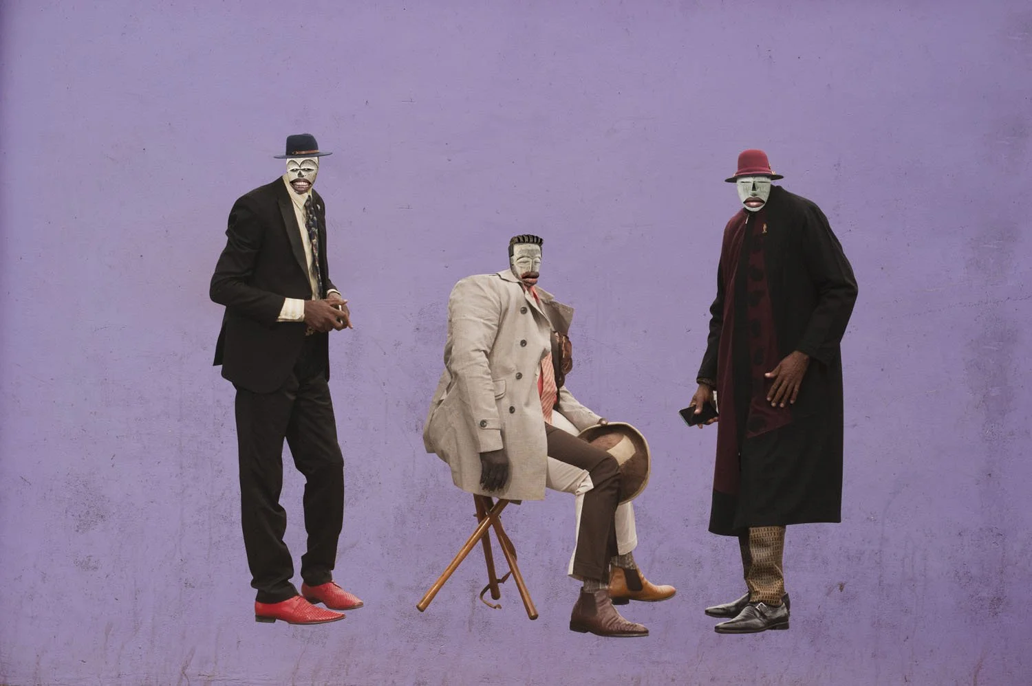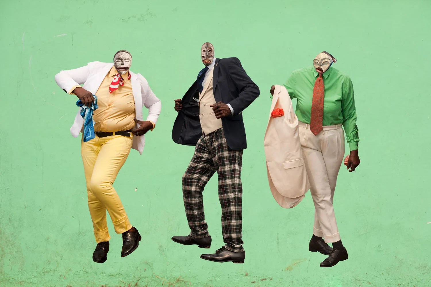 La série de photographies « Sapeurs masqués » explore la culture singulière, complexe et presque surréaliste de la société congolaise connue sous le nom de La SAPE — Société des Ambianceurs et des Personnes Élégantes.