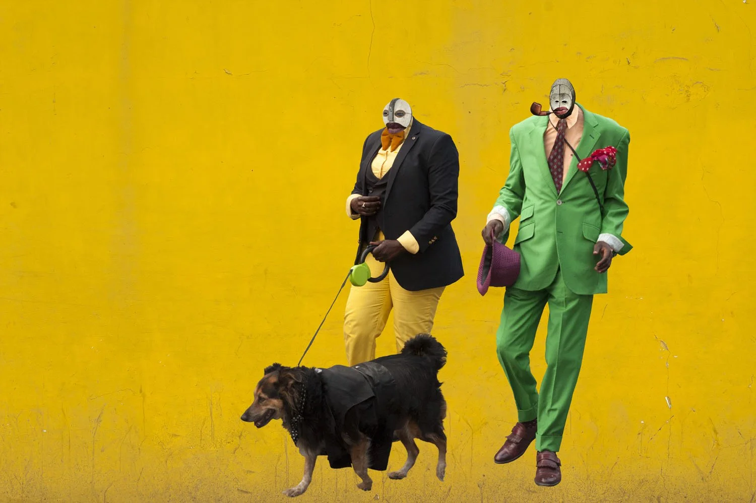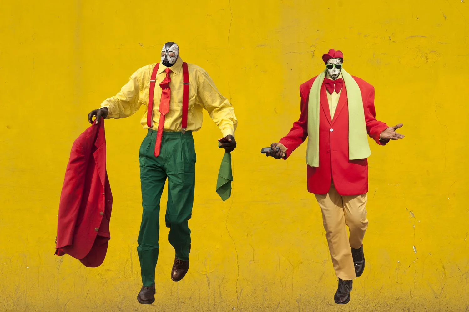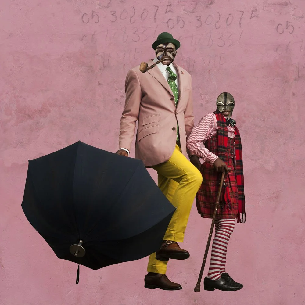 La série de photographies « Sapeurs masqués » explore la culture singulière, complexe et presque surréaliste de la société congolaise connue sous le nom de La SAPE — Société des Ambianceurs et des Personnes Élégantes.